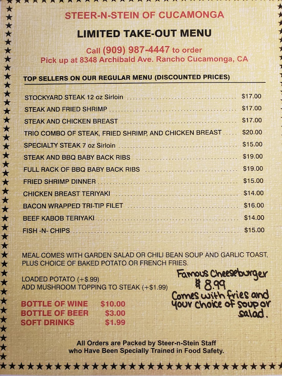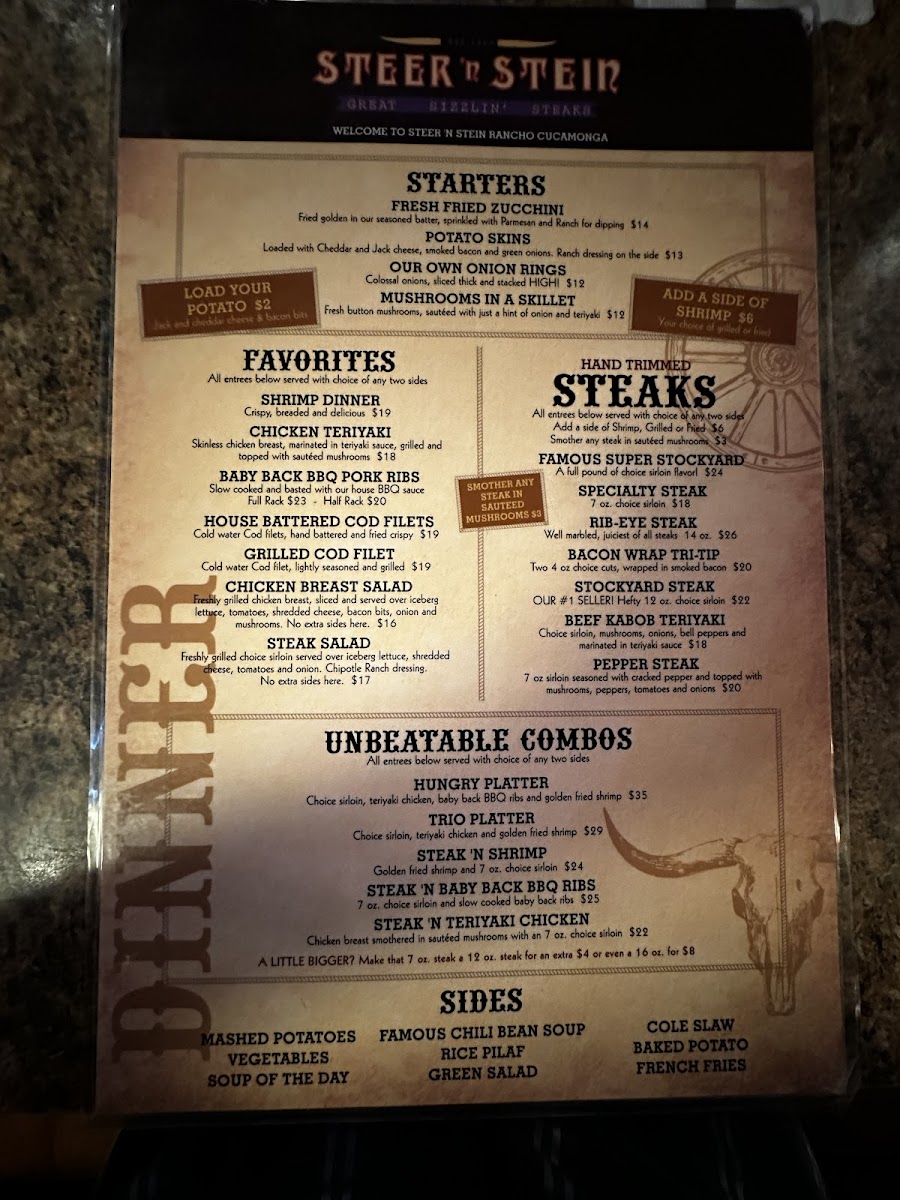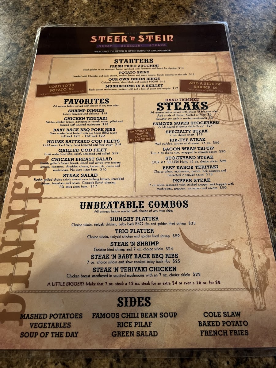 Steer N' Stein of Cucamonga Menu (2025 Update)